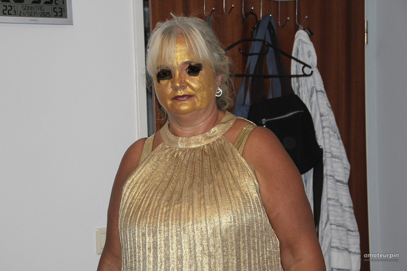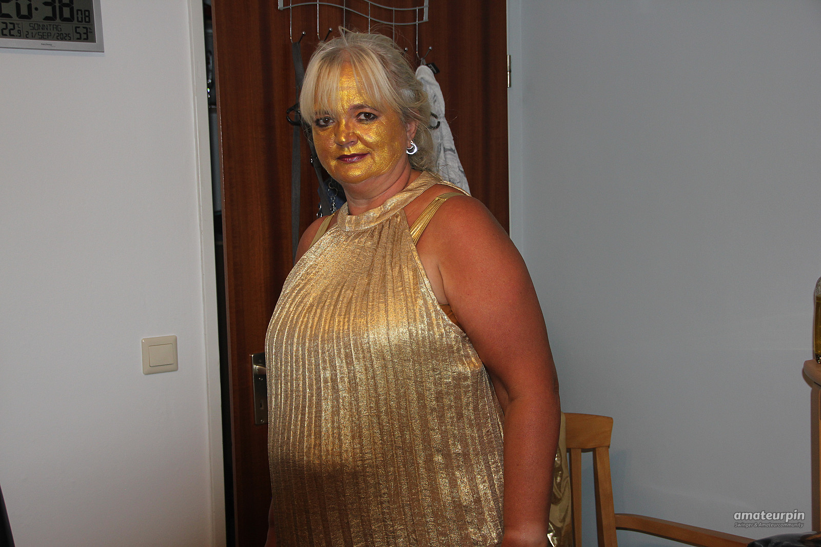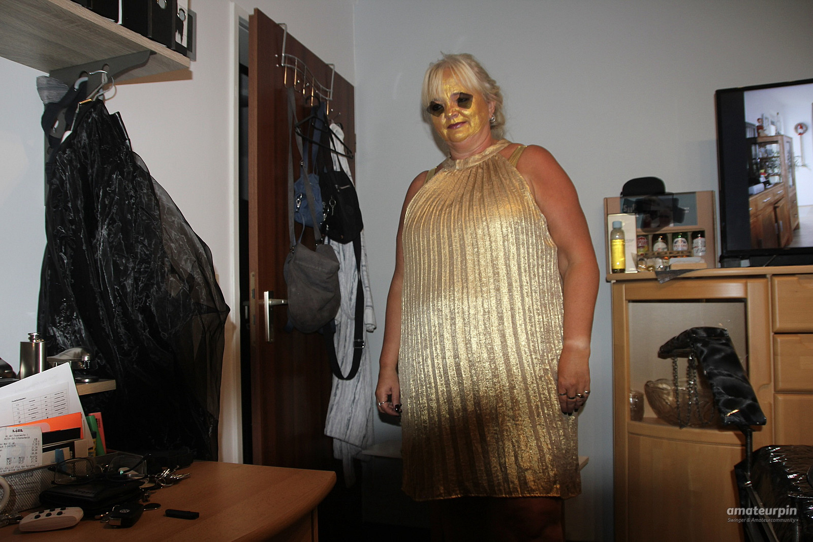 Here, just in the gold dress