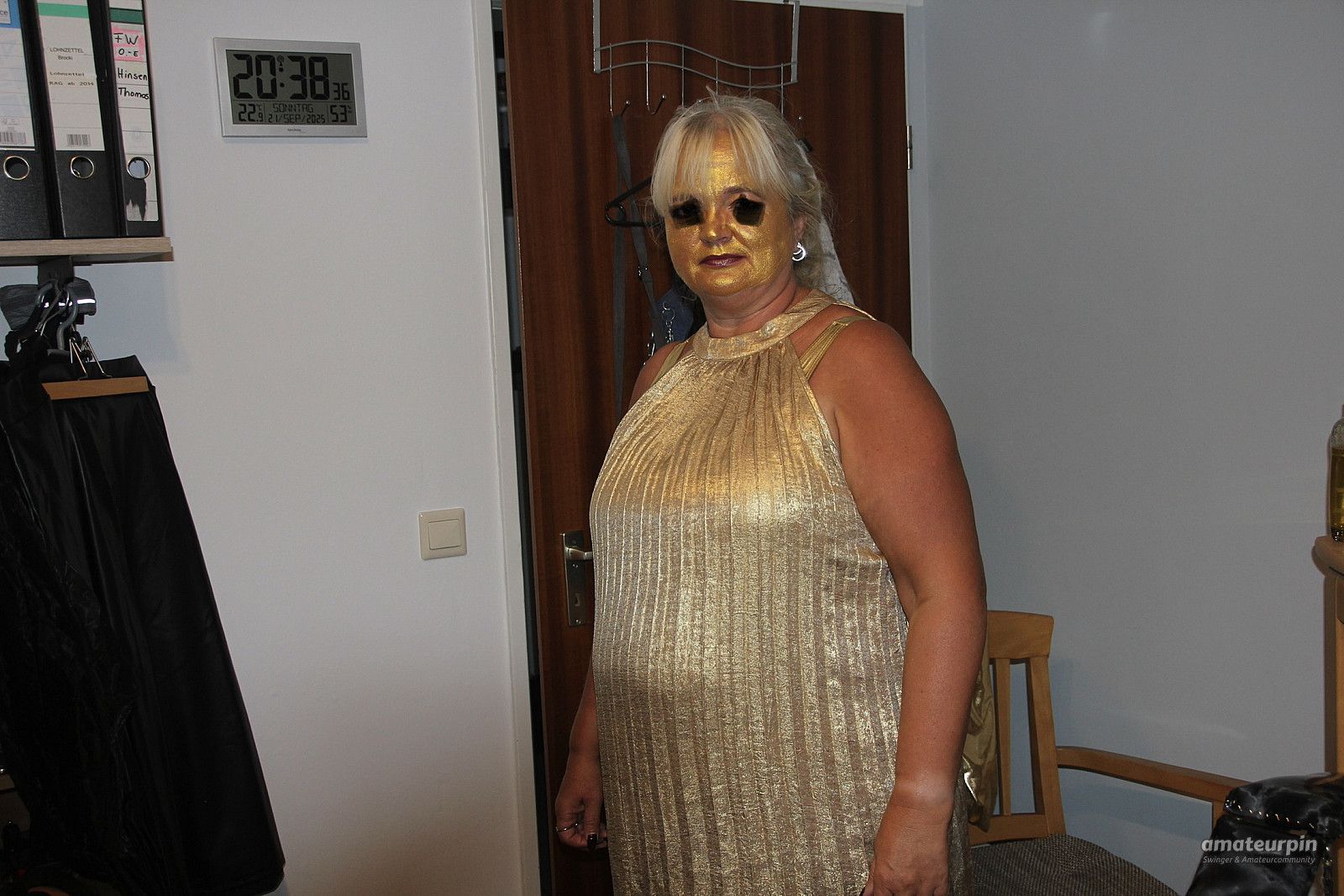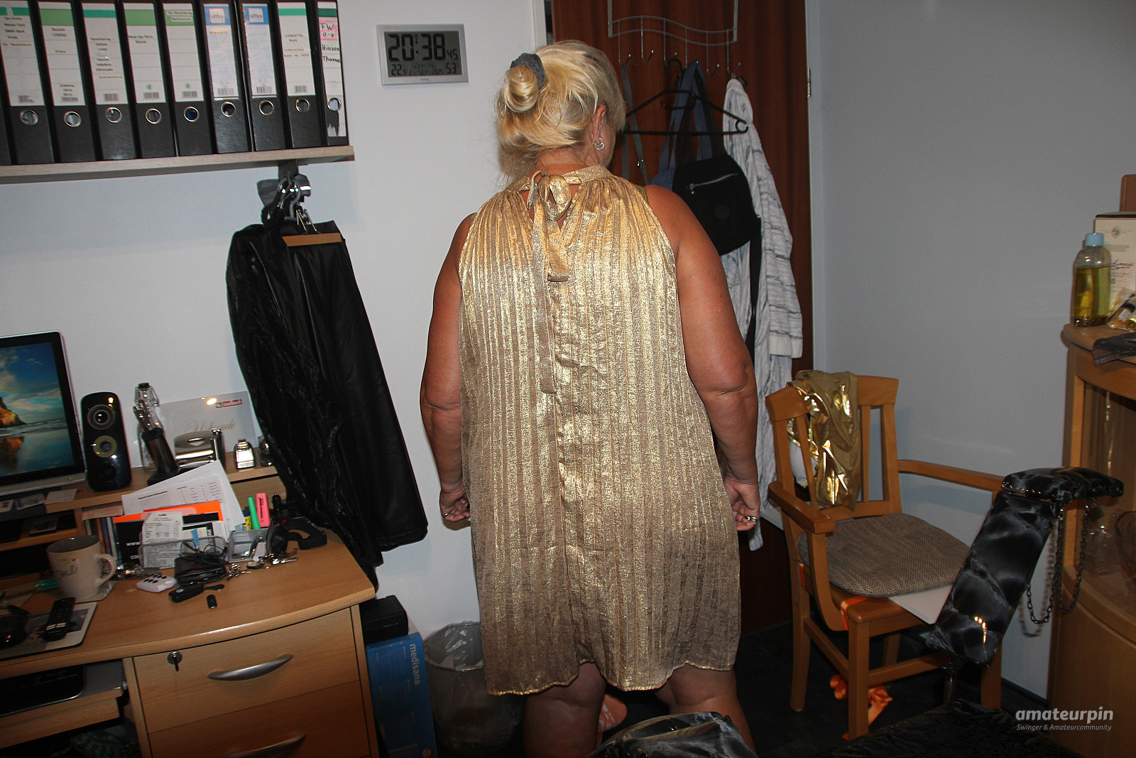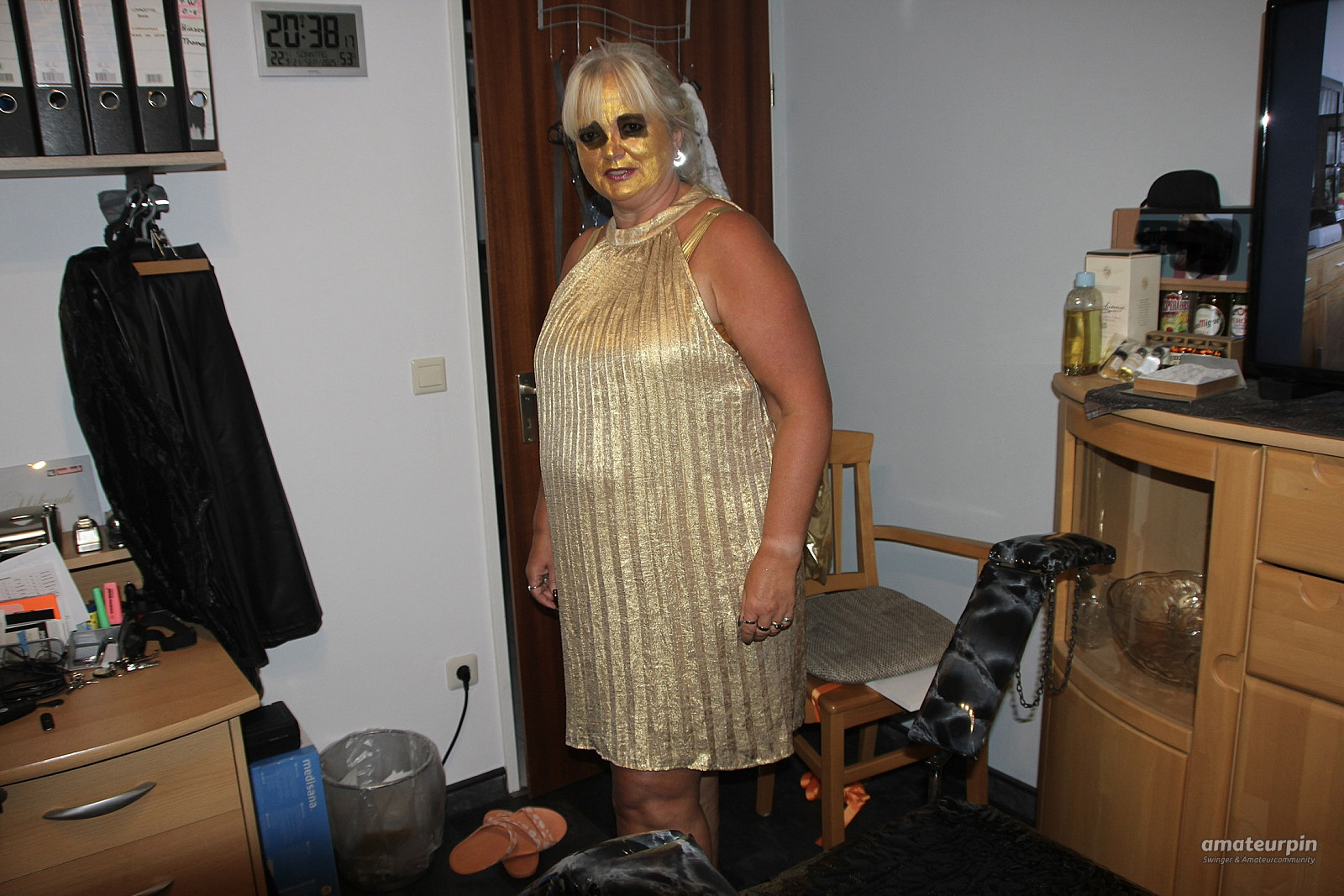 Here, just in the gold dress