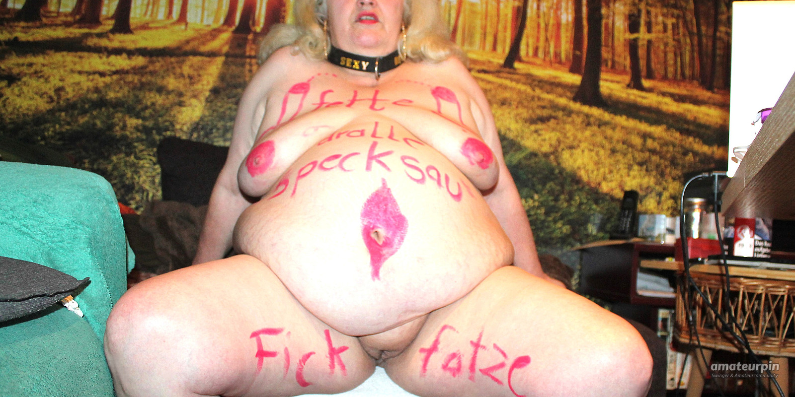 Der fetten Sau würde ich gerne mal an die Titten und Fotze gehen.