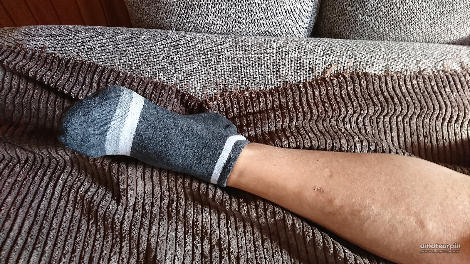 The stove is on - it's cold outside but the sun is shining. I wear socks so that I don't get cold feet - panties and bra and a shirt. So you can spend the whole day on the couch in front of the TV. But who rang the bell now ??