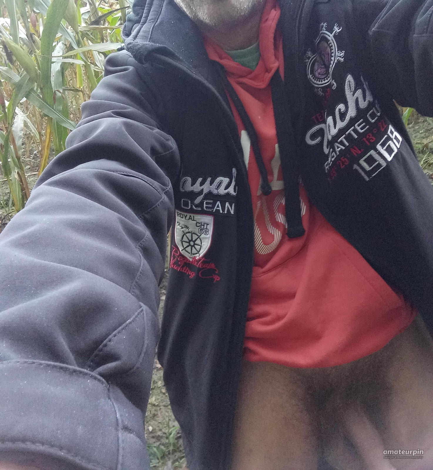 Geil im Maisfeld gewichst. Da war mein Schwanz noch voll behaart, jetzt ist er teilrasiert, nur noch ein wenig über den Schwanz.
