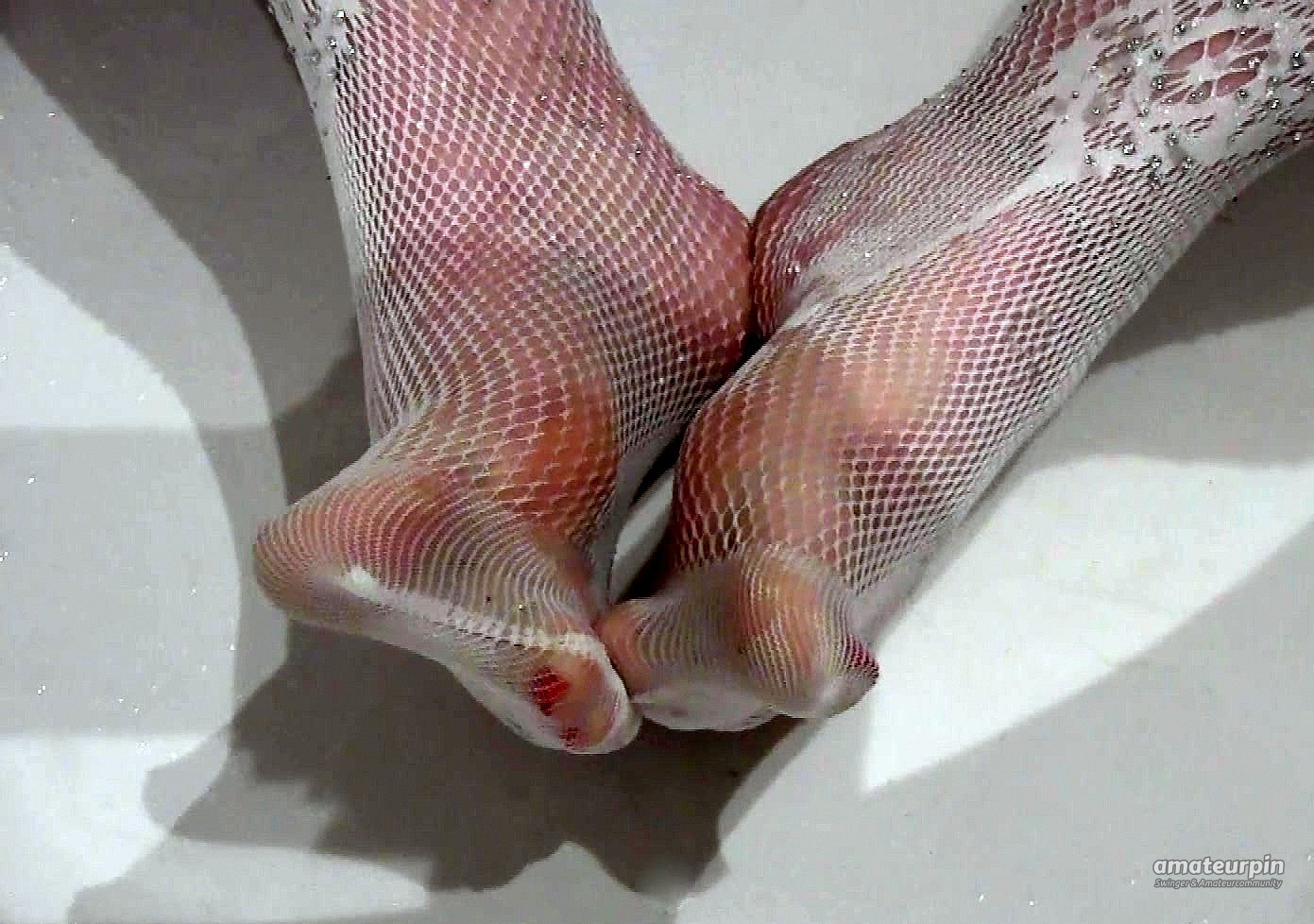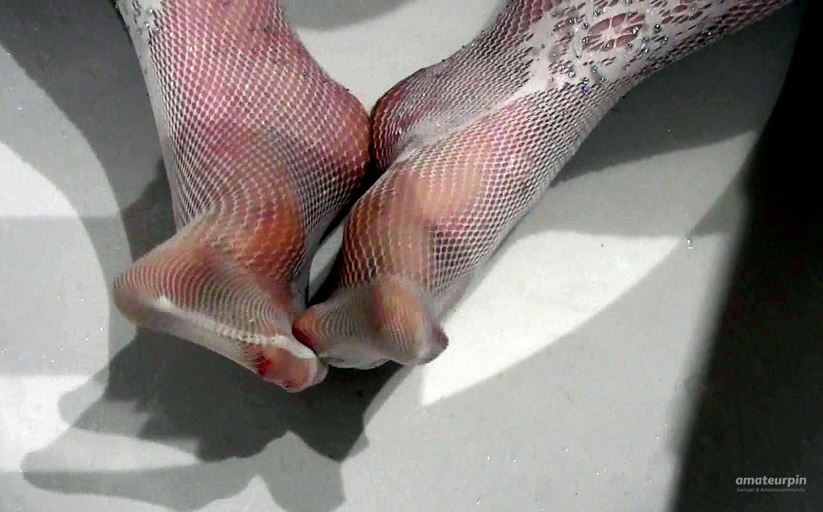 Gei auf Titten, Fotze und Netzfeet gepisst